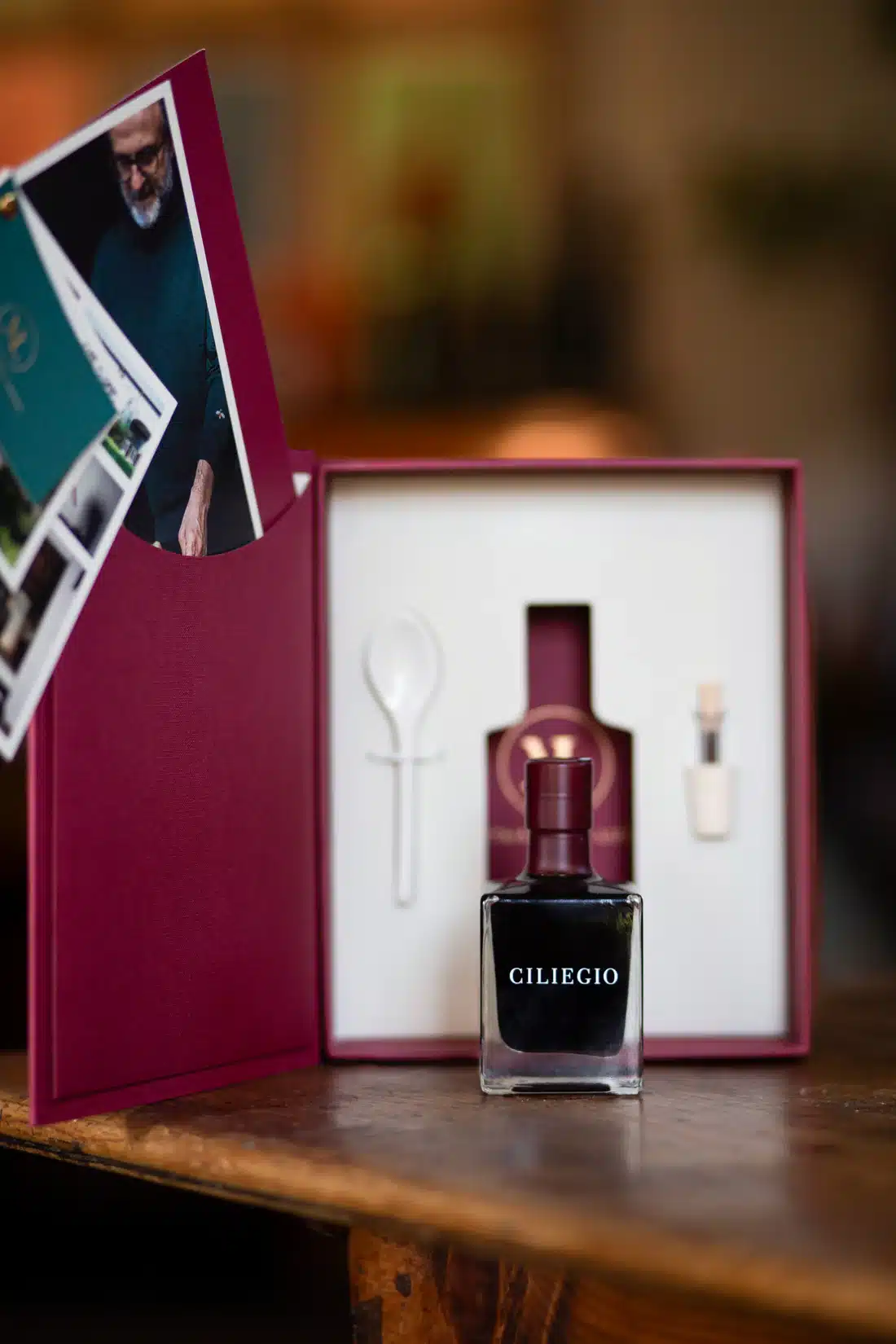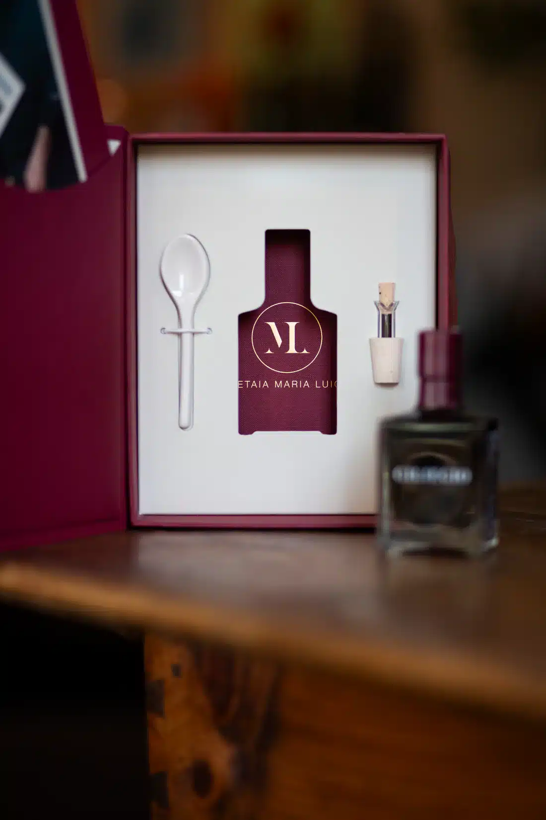 Villa Manadori Ciliegio Balsamico præsenteres i en smuk gaveæske, der inkluderer en håndlavet keramisk ske og dispenser. Den perfekte gave til enhver madentusiast.